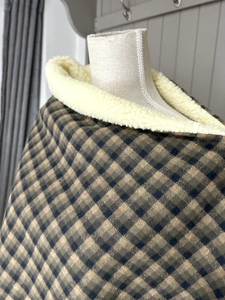 Beautiful and comforting Cashmere Cape with soft fluffy sherpa fleece lining.