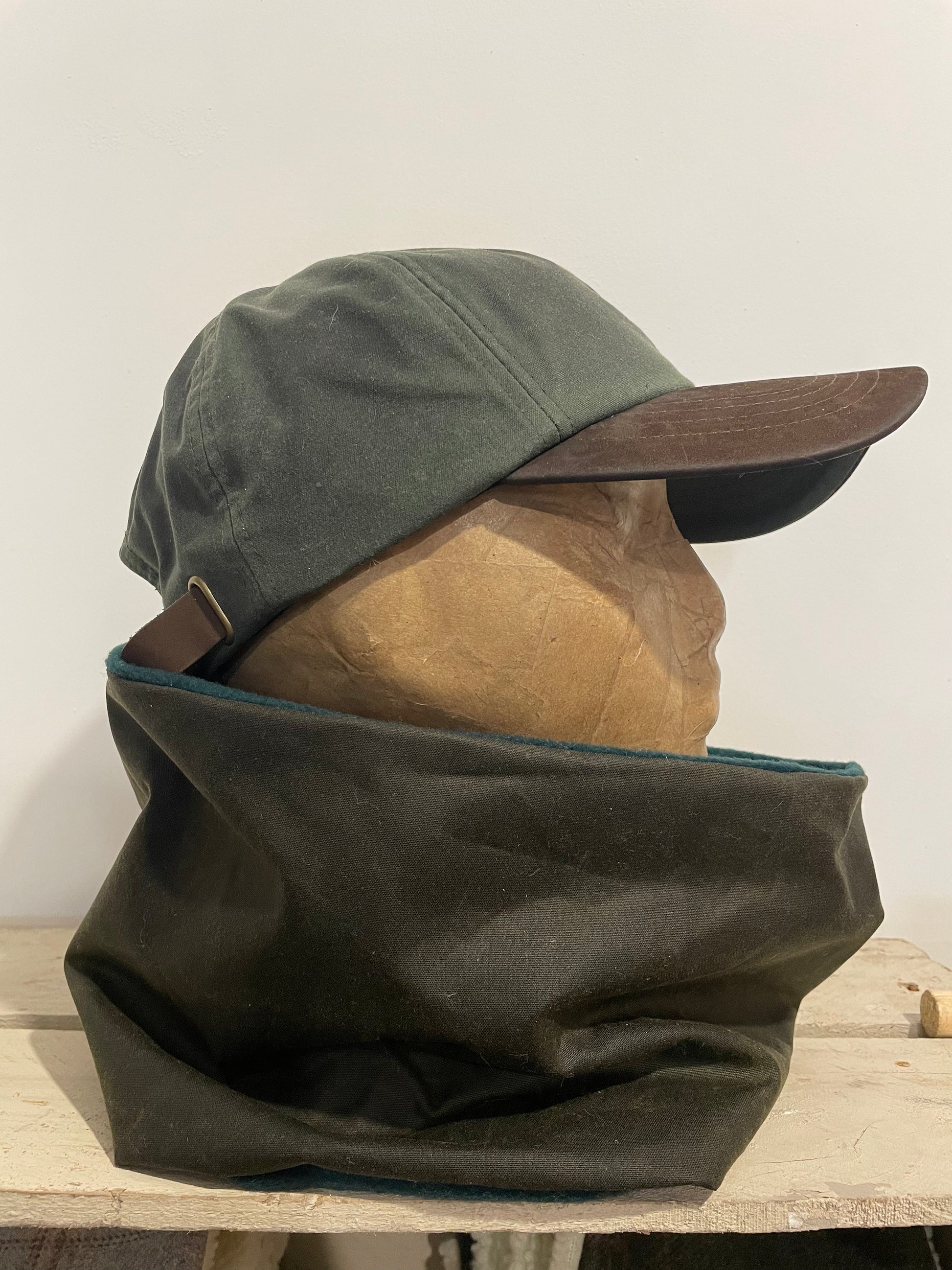 Very practical British waxed cotton snood with super luxury polar fleece lining ideal for those cold wet days whilst in the wilds of Great Britain!